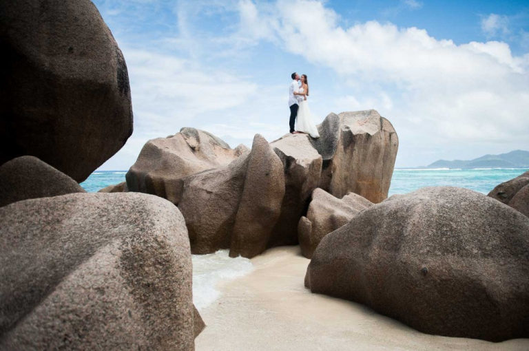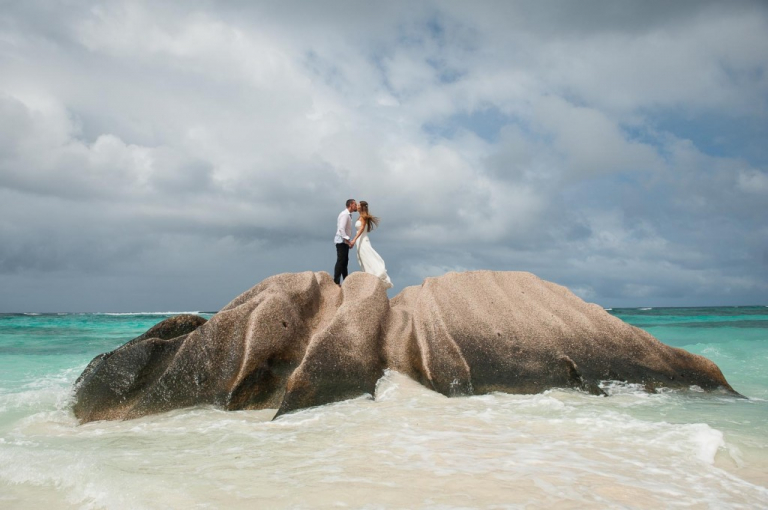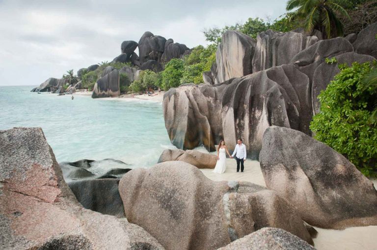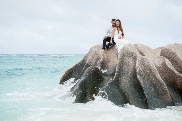 Hochzeitsfotos am Strand Anse Source d’Argent