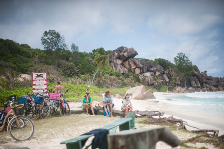 Ich habe mir vorgenommen einige Perspektiven zu testen, die ich letztes Jahr einfach vergessen hatte. Ich wollte mal ein wenig klettern und Fotos von weiter oben machen. Nach einer kurzen Regenpause sind wir mit dem Fahrrad weiter zum Strand Grand Anse auf La Digue.
