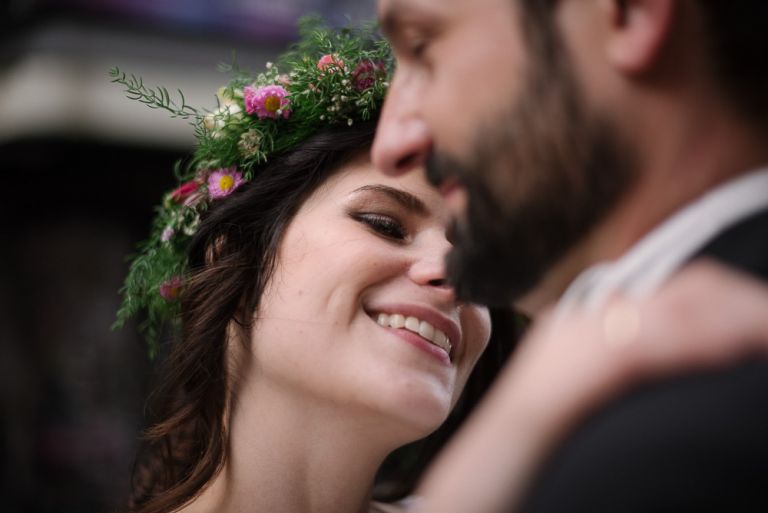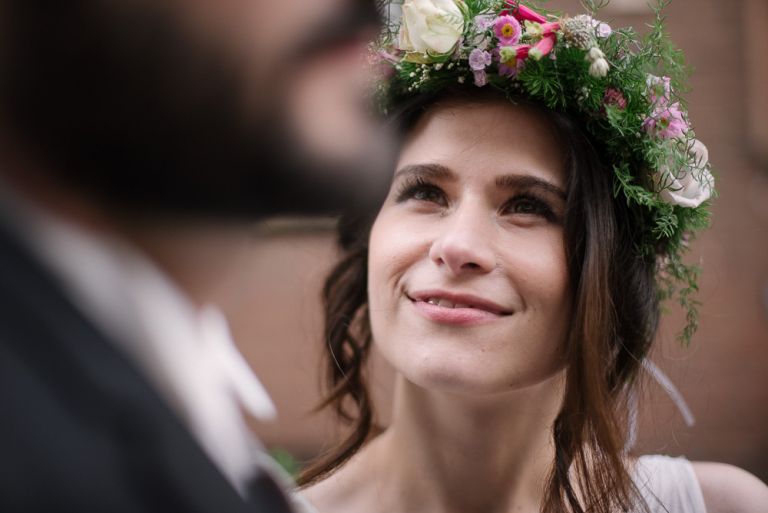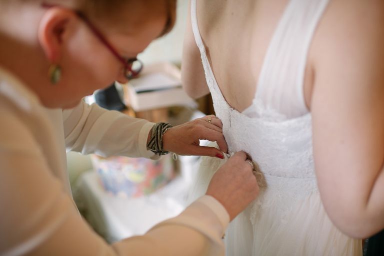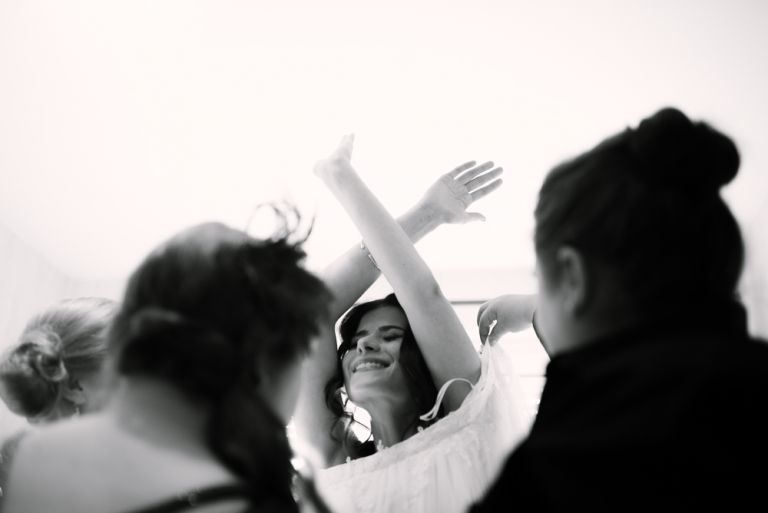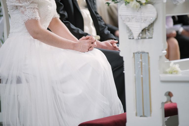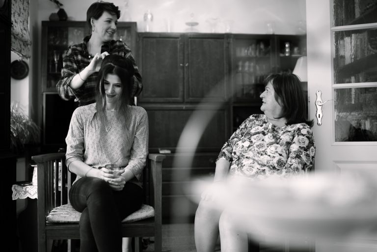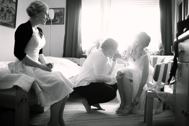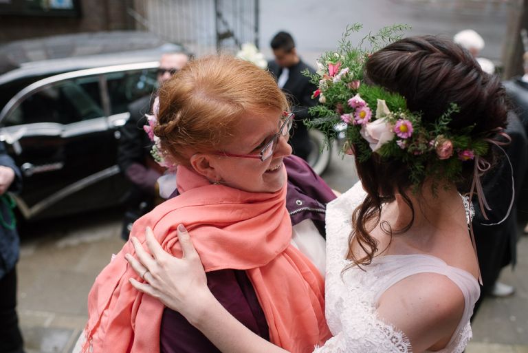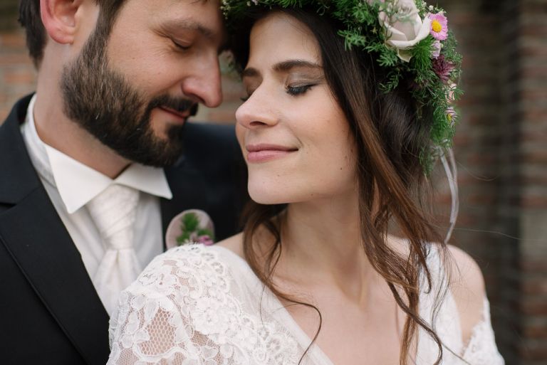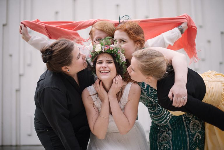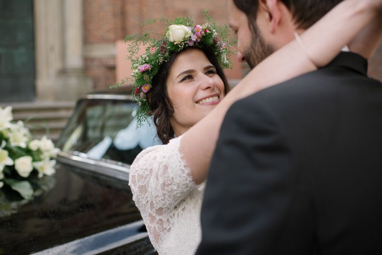 Alice: „Was ich wirklich schön fand, war die Ruhe bei meinen Eltern, bevor dieser unglaubliche Tag losging. Man erlebt ihn wie im Rausch. Und es war gut, vorher in so einem familiären, kleinen Kreis zu sein. Es war geradezu meditativ auf dem Stuhl zu sitzen und geschminkt zu werden. Man muss nichts selber machen. So entspannt. Meine Freundinnen haben mir geholfen, mein Kleid anzuziehen. Das war ein so besonderer Moment, den ich nicht vergessen werde. Wir leben verstreut in Deutschland, aber an diesem Tag sind alle zusammen gekommen.“