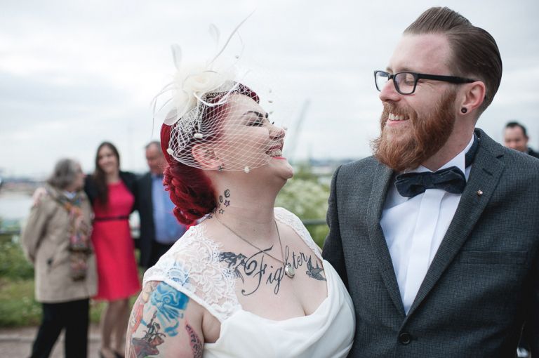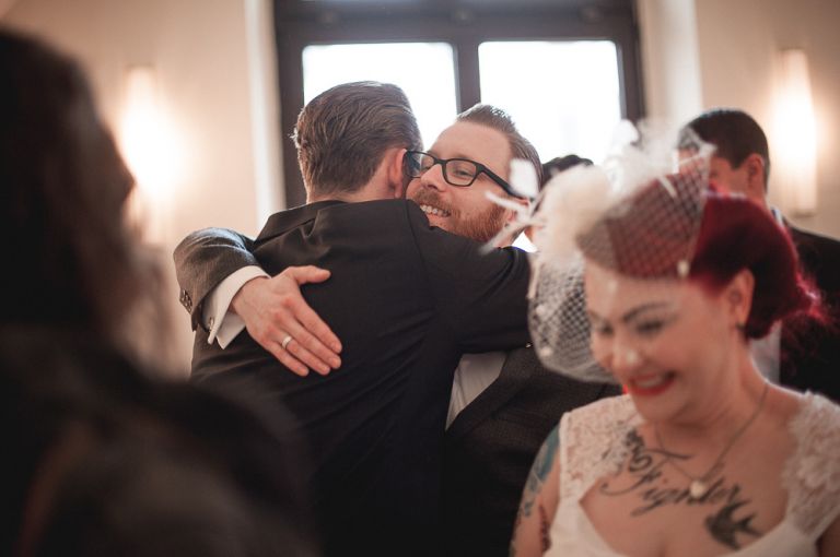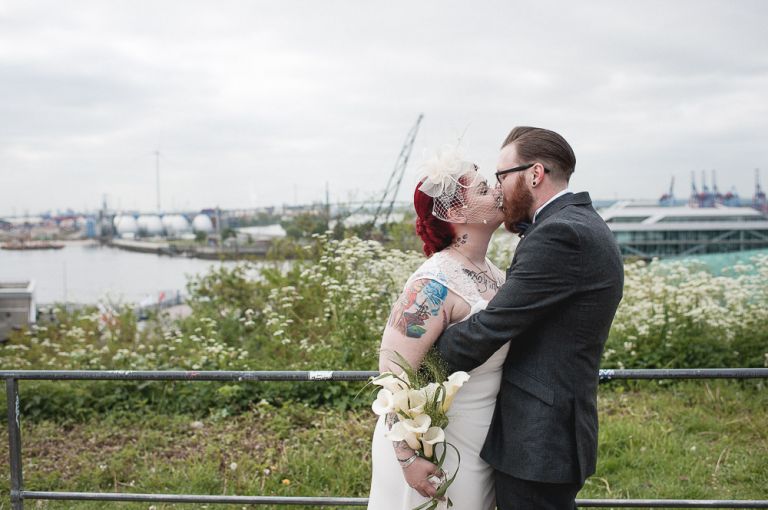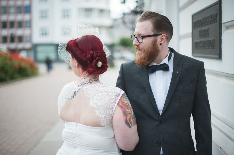 Rockabilly Hochzeit Rathaus Altona & Loft 23. Isi und Flo habe ich sofort in mein Herz geschlossen, denn die Beiden sind einfach nur sympathisch. Los ging es traditionell im Rathaus Altona. Nach der standesamtlichen Trauung haben wir Fotos am Altonaer Balkon gemacht und uns später zur Feier im Loft 23 getroffen. Jasper, ein Kumpel aus meiner Zeit an der HWP hat mitten in der Stadt eine geniale Location gebaut. Oft wird das Loft für Filme und hipster Werbeaufnahmen gebucht. Im Hochzeitskontext ist das Loft 23 entspannt, urban und gemütlich. Eine Party unter Freunden, mit selbstgemachter Musik und viel Lebensfreude. So kann und muss Hochzeit. Viel Freude mit den Bildern der Rockabilly Hochzeit im Rathaus Altona & Loft 23..jpg)